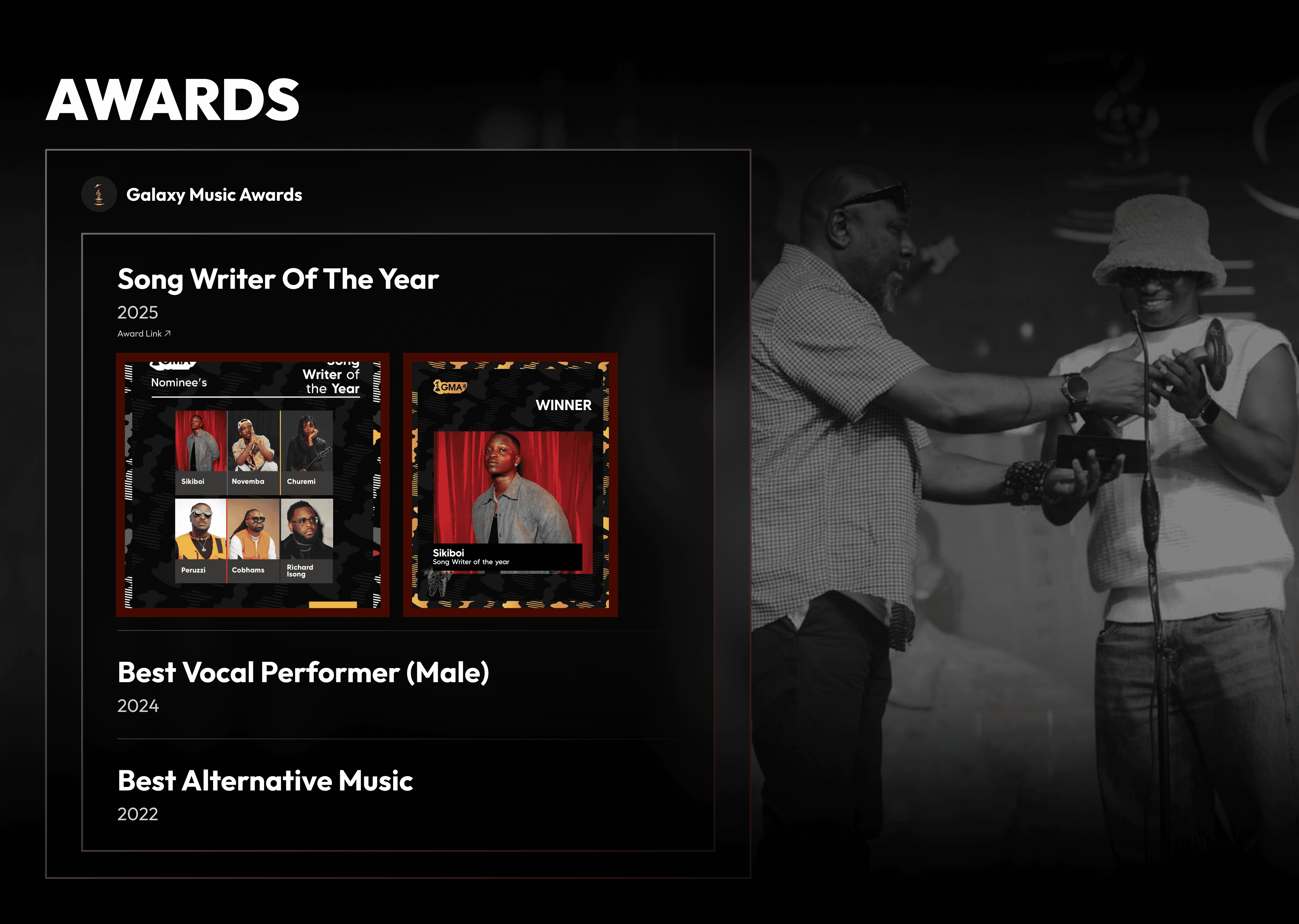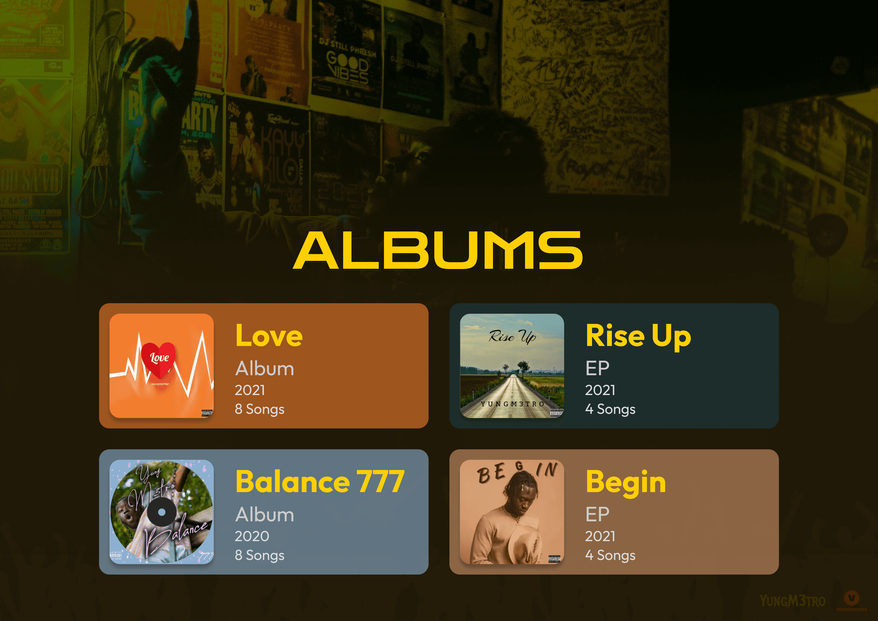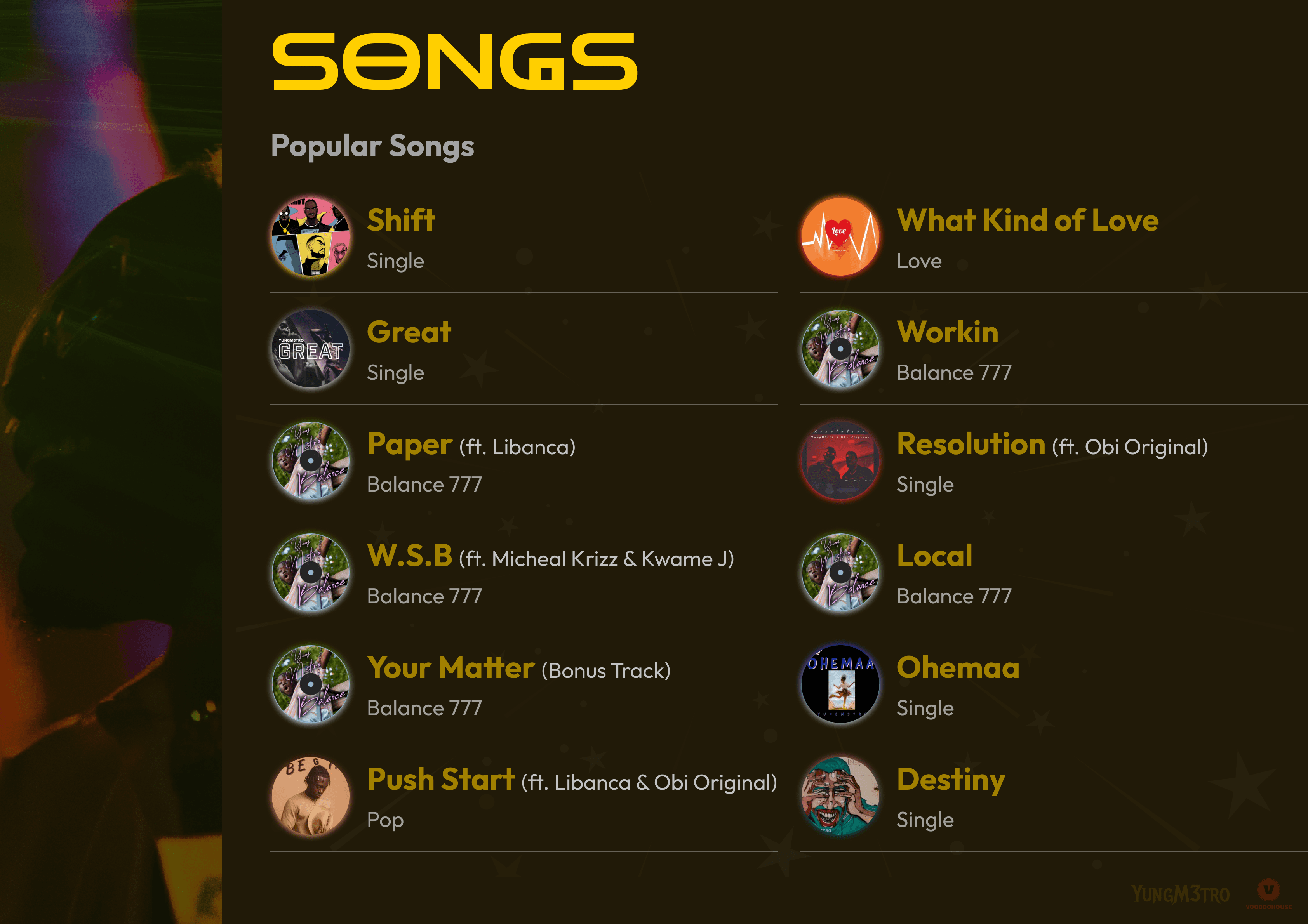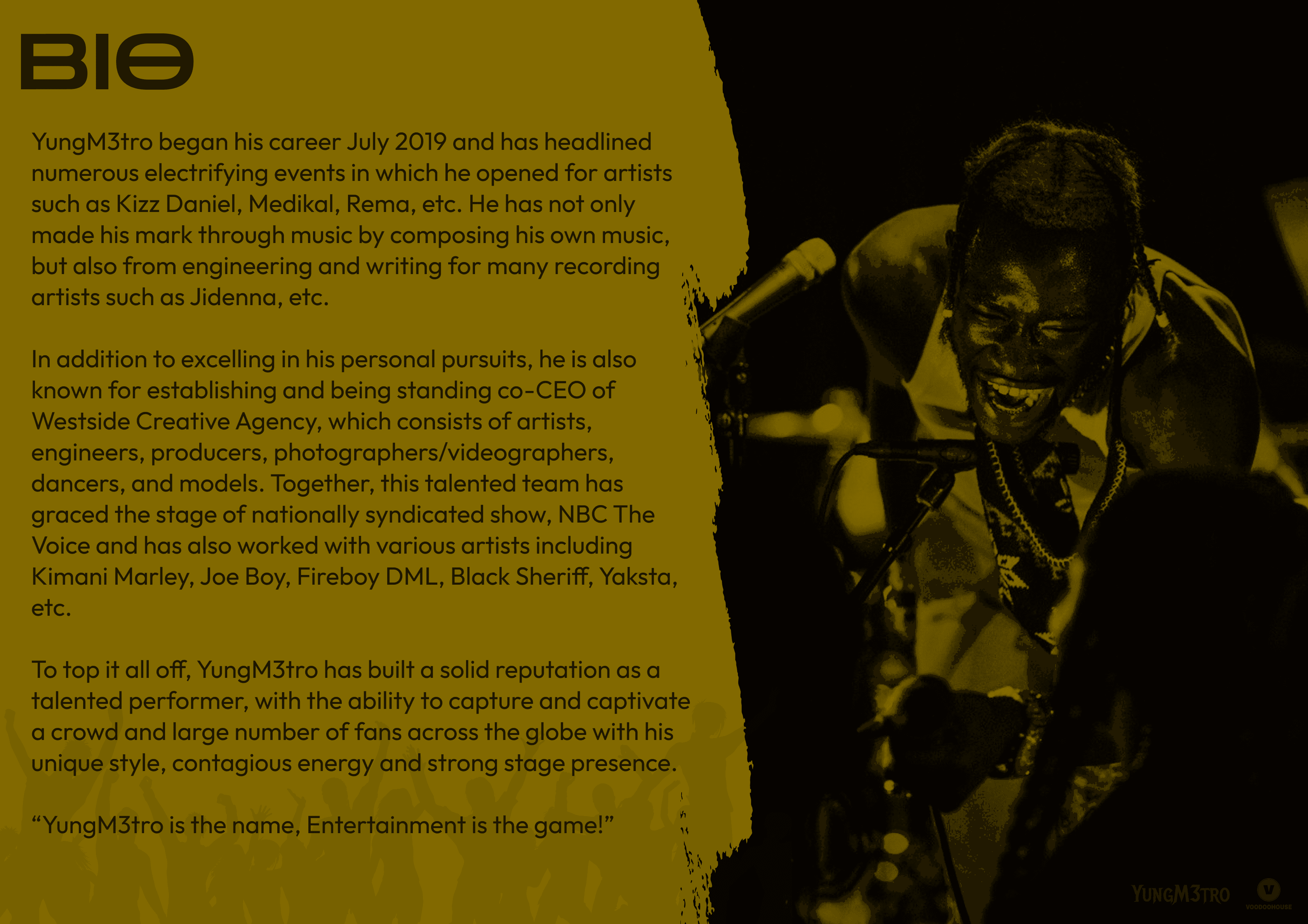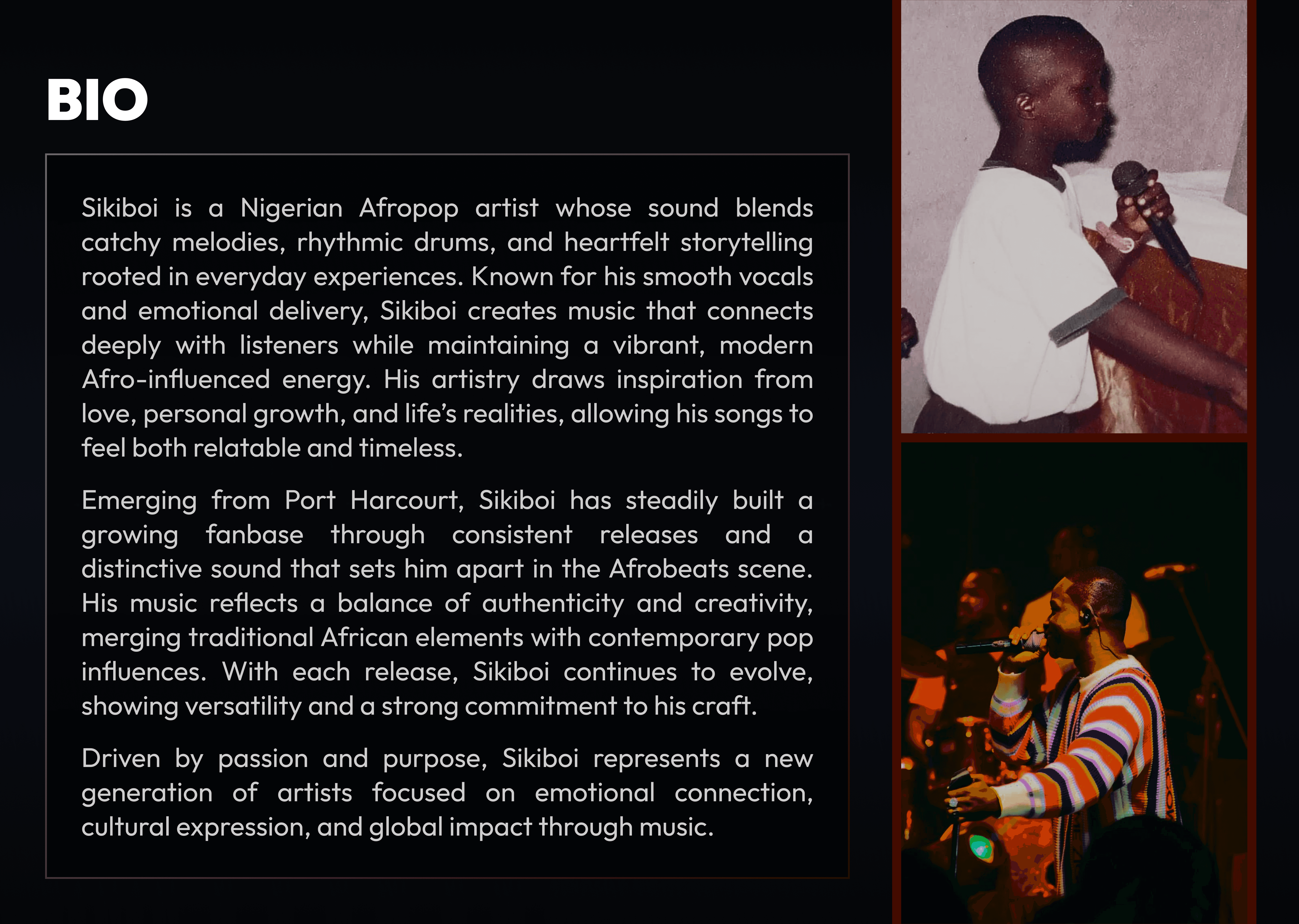 Bio page with artist story, image, formatted layout